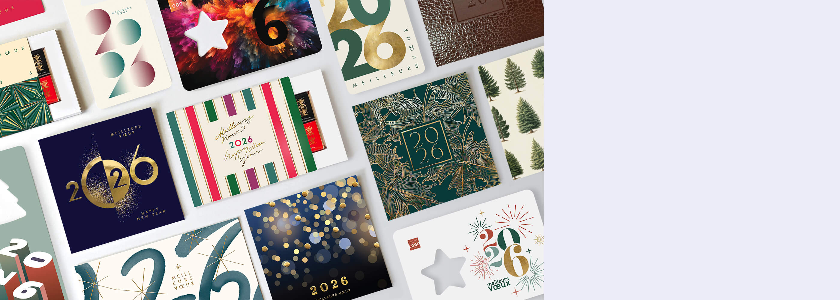 Des cartes de vœux professionnelles à personnaliser en ligne ou vierges (économie de 20%), à vous de choisir !
