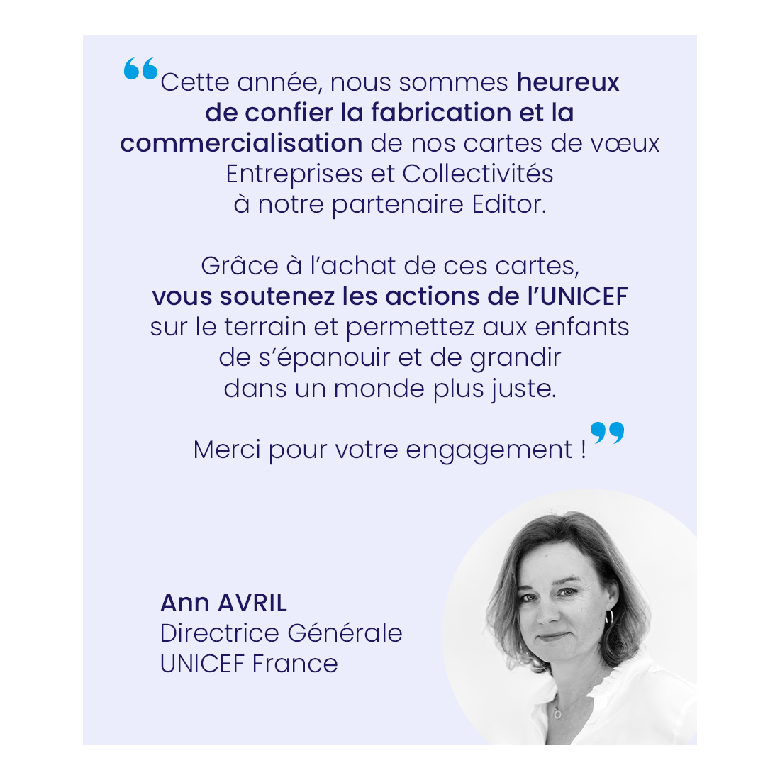 Vos partenaires, clients, fournisseurs, collaborateurs... seront ravis de partager votre engagement pour les actions de l’UNICEF.